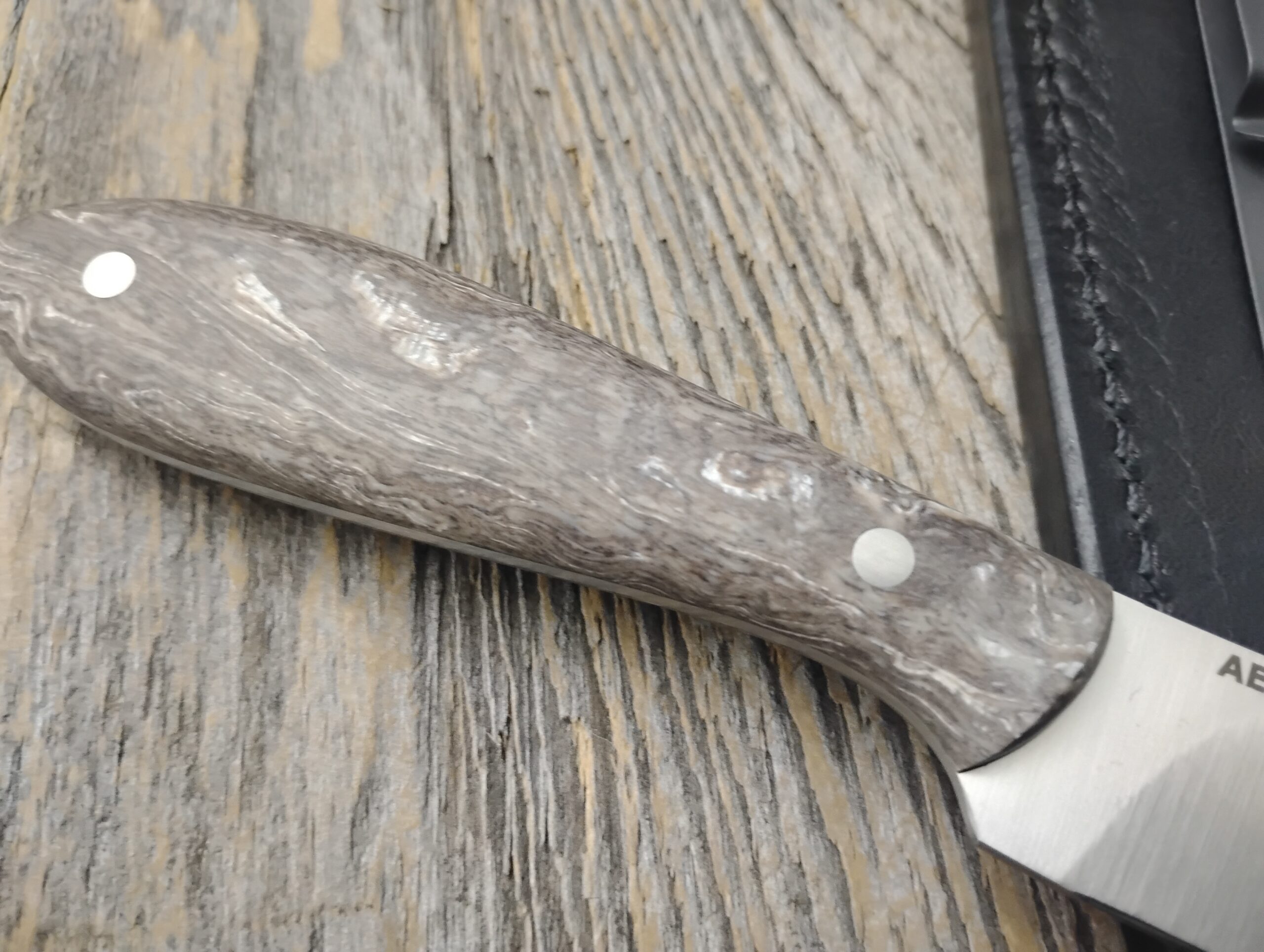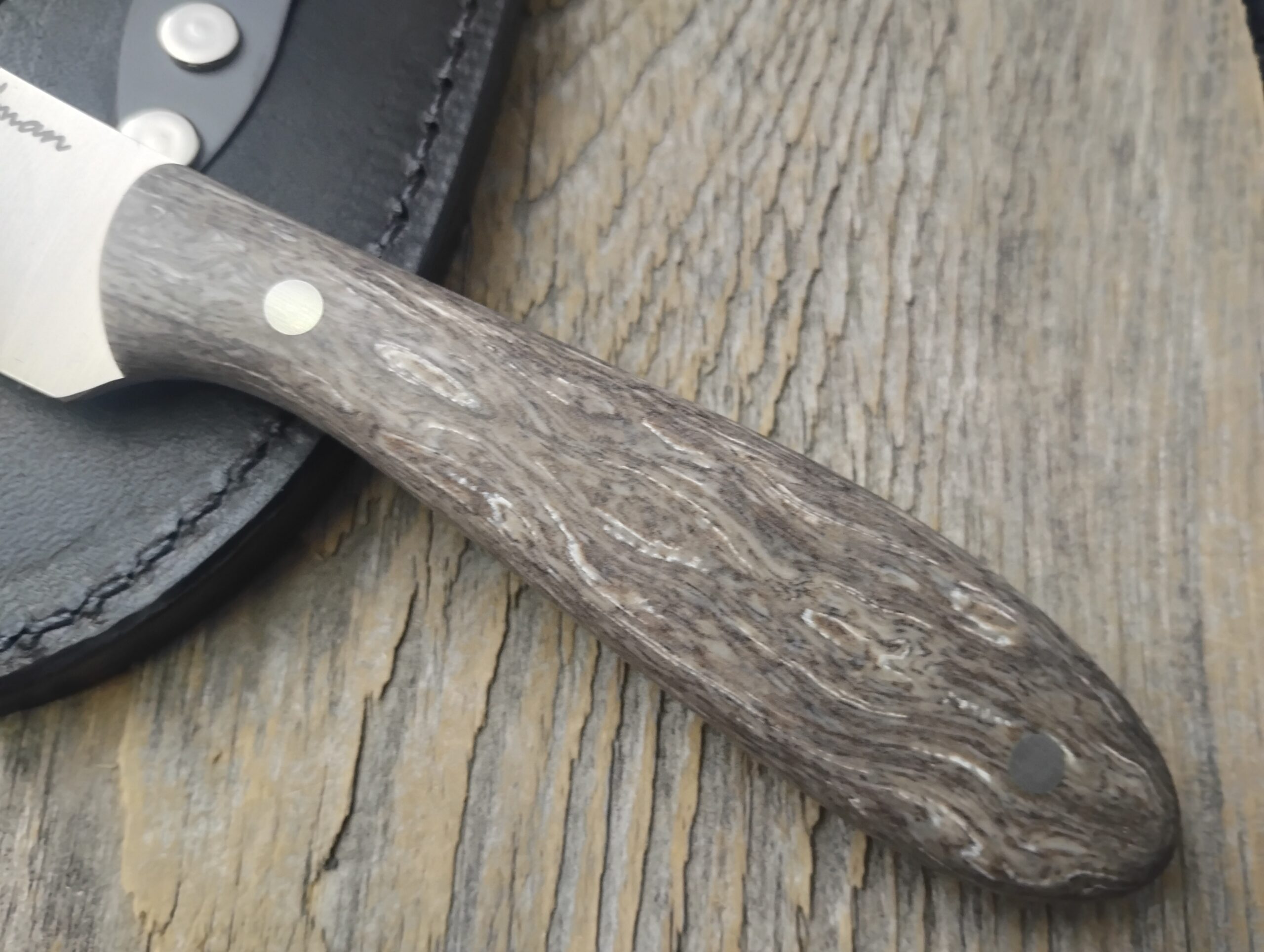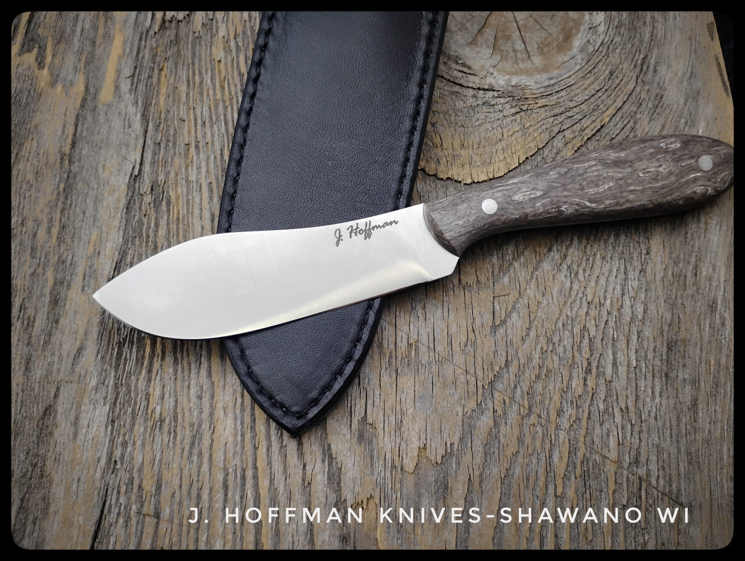 The Donegal is a cross between a Nessmuk and the Canadian Belt Knife. It’s a great hunting and skinning blade. Crazy Fiber is a special micarta product that is often known for its bright color combinations. The Burl variation is more natural colors and subdued.
