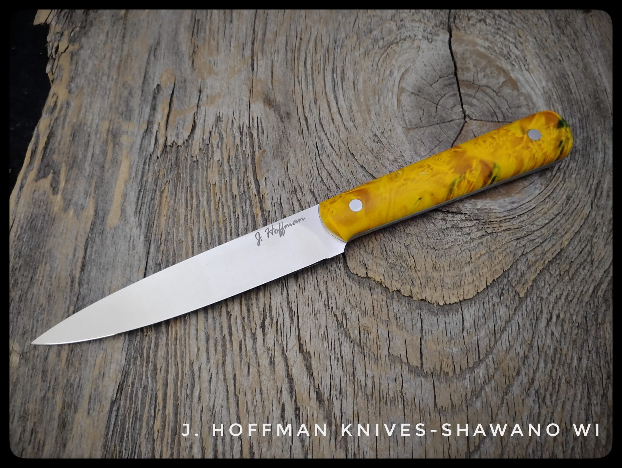 The Wolhuter 85 is a great knife that fits the void between the Clare Paring knife and the Wicklow Utility. The long, slender blade can be used for peeling or cutting on a board. The shallow hollow grind allows for great food release.